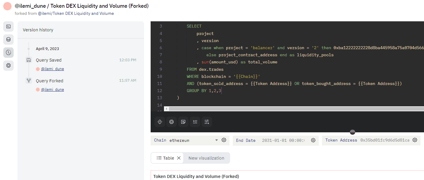 The first time you save a query (whether it is forked or freshly created), there will be an initial commit to the query history. If you’ve forked the query, you won’t be able to access the original query’s edit history - it starts anew for you.Saving and naming versions
